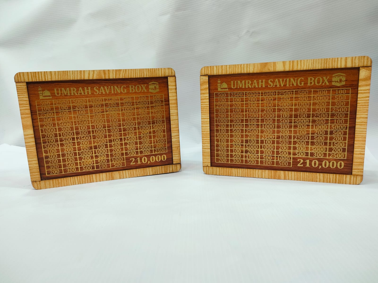 Umrah Saving Box, Wooden Lockable, 210,000 PKR Goal Tracker, Donations & Umrah Fund